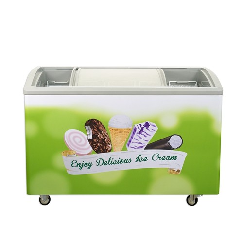PHICOLD SD-H350 325L Ice Cream Freezer Curved Glass Door Chest Freezer