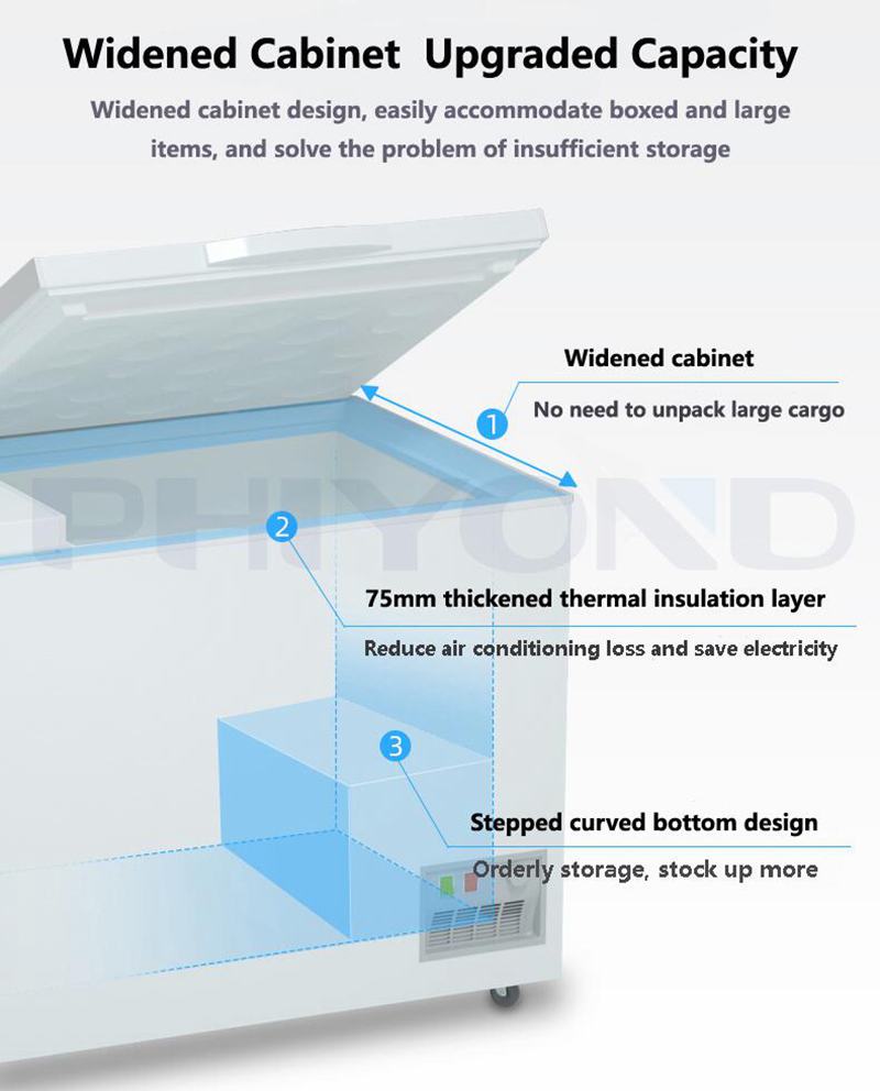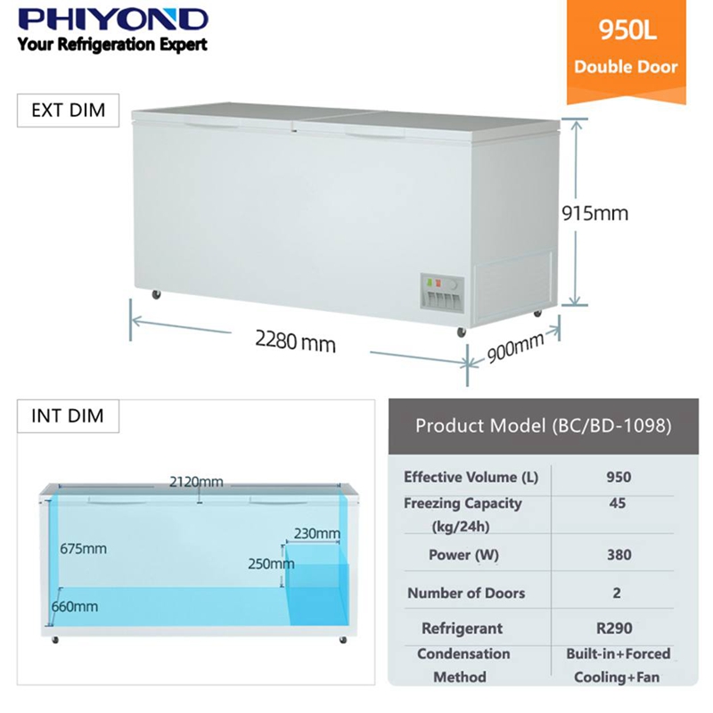 PHICOLD BC/BD1098 950L White Double Door Deep Commercial Chest Freezer