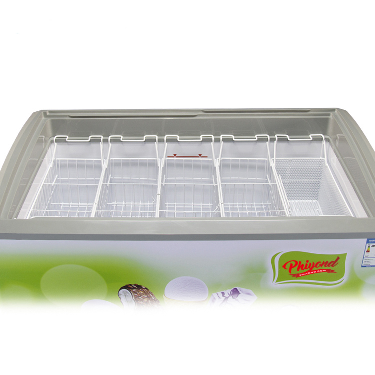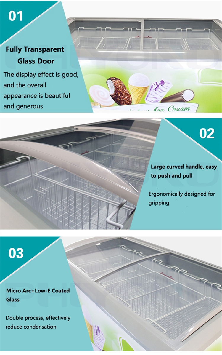 PHIYOND SD-H350 325L Ice Cream Freezer Curved Glass Door Chest Freezer
