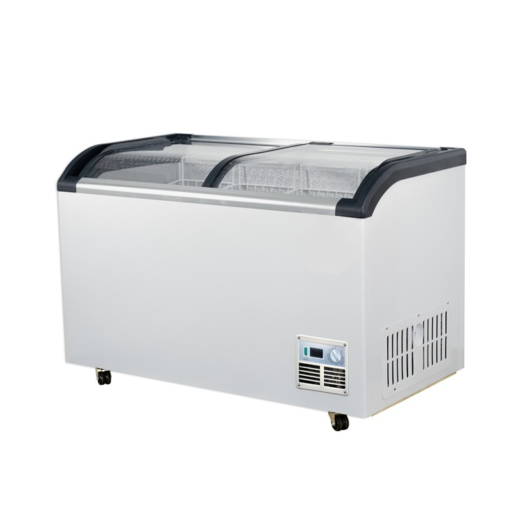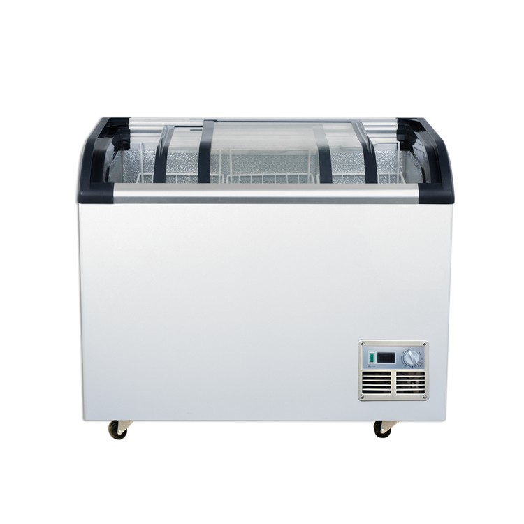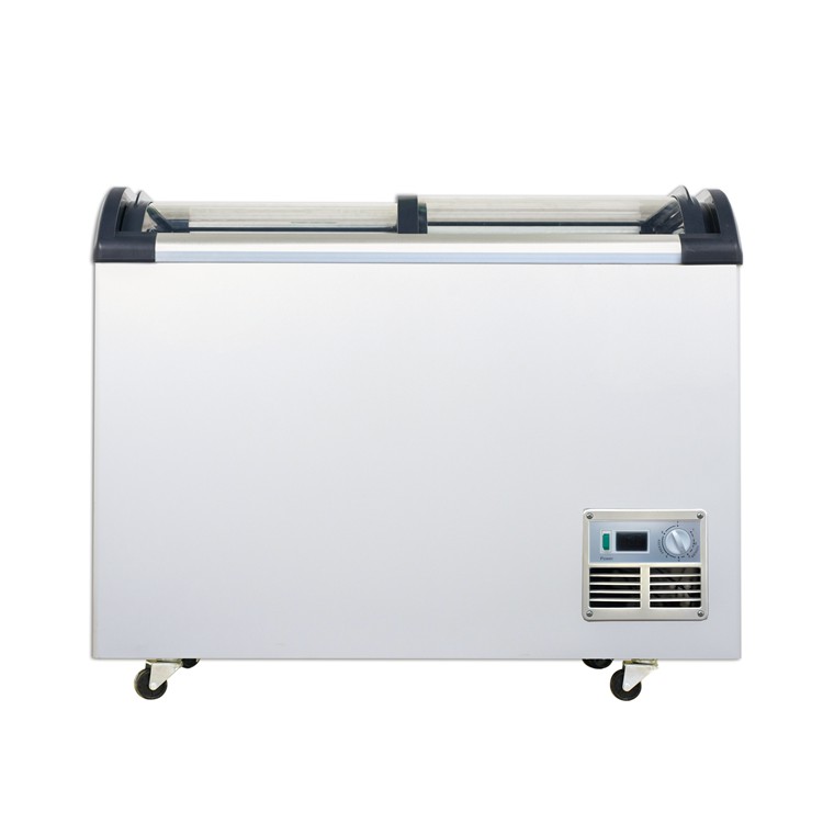 PHIYOND SD-Q350 320L Ice Cream Freezer Curved Glass Door Chest Freezer