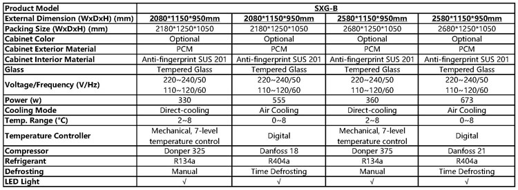 1. Donper compressor with R134a or Danfoss compressor with R404a will keep this freezer work efficiently. Domestic famous brand copper pipe will never get gas leak. LED light, saving energy and brighter.