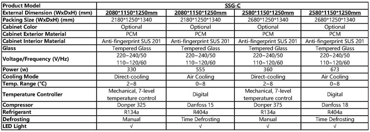 1. Donper compressor with R134a or Danfoss compressor with R404a will keep this freezer work efficiently. Domestic famous brand copper pipe will never get gas leak. LED light, saving energy and brighter.