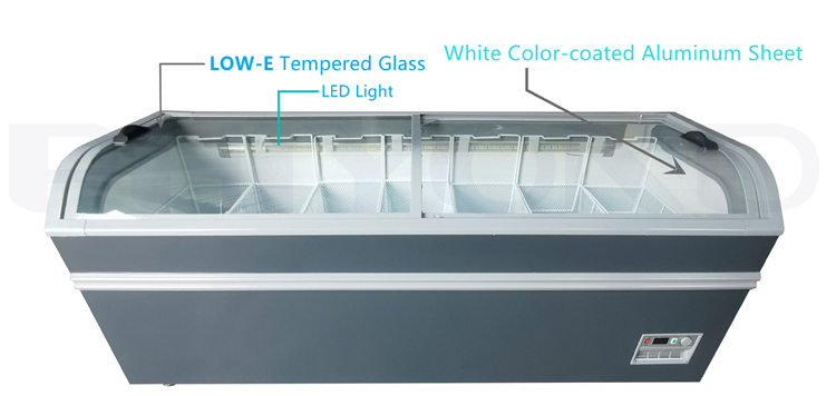 PHIYOND DG-2000 680L Supermarket Commercial Large Capacity Display Sliding Glass Door Chest Arc Island Freezer